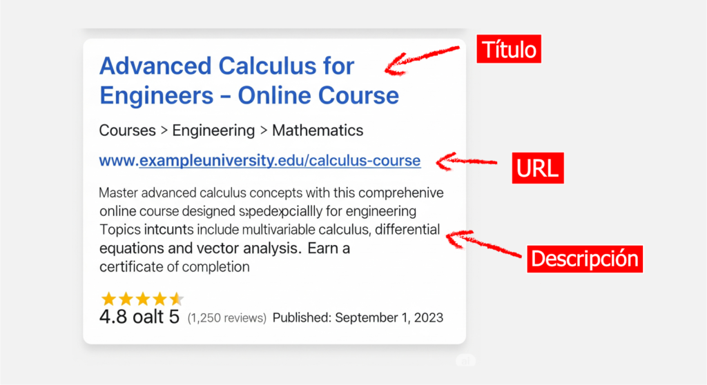 En esta fase de la optimización completa de títulos, meta descripciones y URLs, el objetivo es simple pero crucial: lograr que el usuario haga clic sin pensarlo demasiado. Para eso, piensa en tu título como el primer vendedor del contenido.